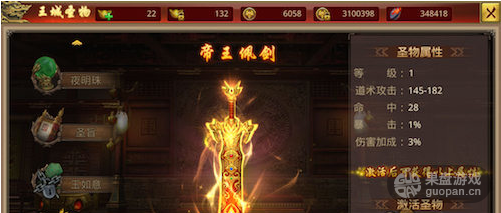 通过打怪收集而来的圣物材料,可对各种圣物进行升级。圣物等级越高,所附加在玩家角色身上的属性也就越高。